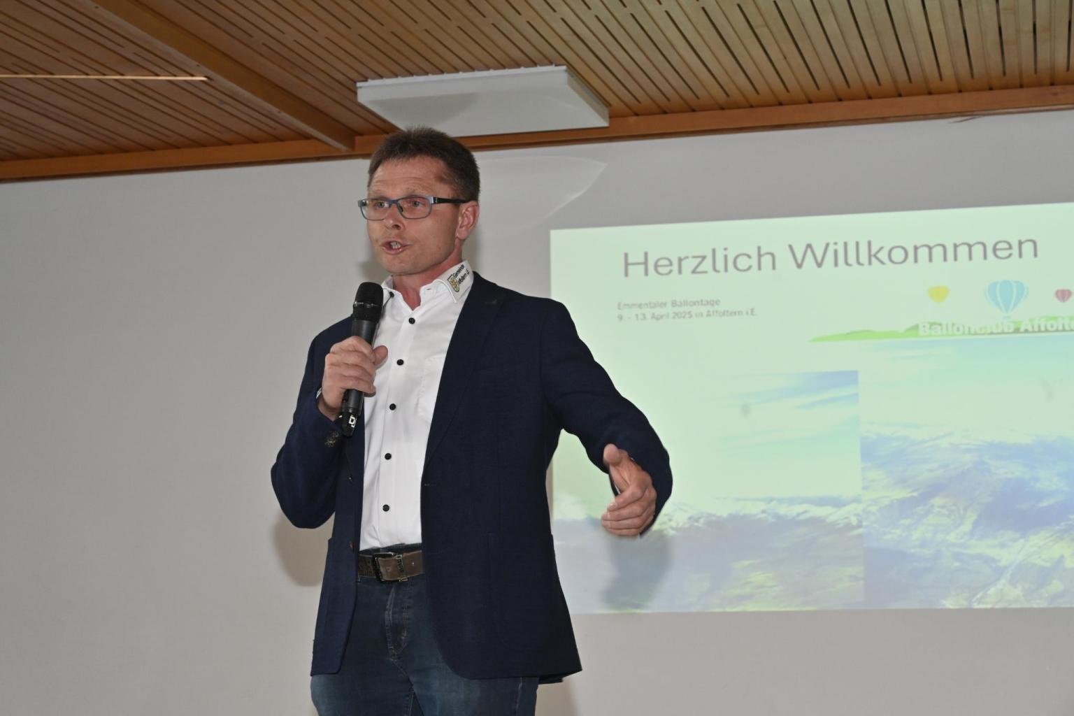 Zu Beginn des General Briefings heisst Roland Ryser, Gemeindepräsident von Affoltern i.E., die Piloten mit einem Zitat aus Jeremias Gotthelfs reichem kulturellem Schatz willkommen: «Das Emmental, eng begrenzt ist sein Horizont von waldigen Hügeln, an deren Fuss sich unzählige Täler ziehen. Von rauschenden Bächen bewässert, die in stillem Murmeln ihre Geschiebe wälzen, bis sie den Schoss der Emme finden.» Dann fährt er weiter: «Und wer kann besser kontrollieren als die Ballonteams, Piloten und Nachfahrer, ob diese Worte, diese Behauptung auch wirklich stimmt.» Im Namen der Einwohnergemeinde, des Gemeinderates und der Verwaltung überbringt Roland Ryser den Gästen aus vielen Teilen der Schweiz, aus Deutschland, Österreich und Frankreich herzliche Grüsse und wünscht allen einen schönen Aufenthalt und erlebnisreiche Tage.