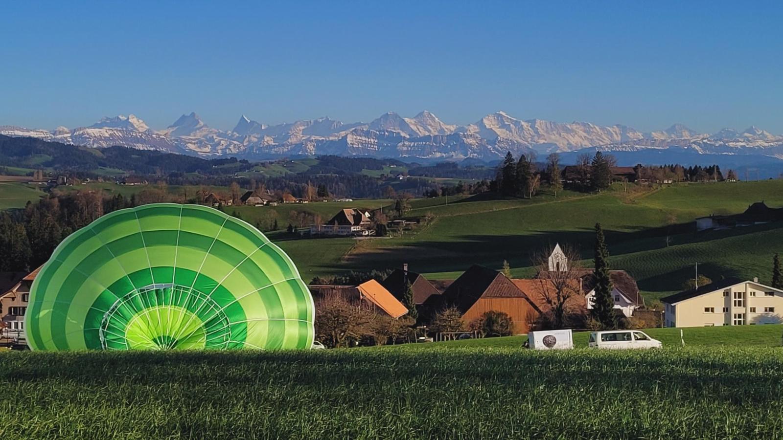 Heute Abend konnten wir herrliche Ballonbilder vor den Berner Alpenkette im Abendlicht geniessen und danken den zahlreichen Zuschauerinnen und Zuschauern fürs Kommen. Es hat sich jetzt gegen Abend gezeigt, dass die Ballonhüllen fürs Nachtglühen wegen zu starken Windböen nicht aufgestellt werden können. Die Brenner bringen aber dennoch einen feurigen Zauber in die Dämmerung. Es lohnt sich also, noch ein wenig auszuharren. Anschliessend gibt es in der Festwirtschaft dann noch Speis und Trank. Und schau dir doch dieses Video an: Link. - Es gibt einen kurzen Eindruck, wie das Nachtglühen mit Hüllen wirkt.