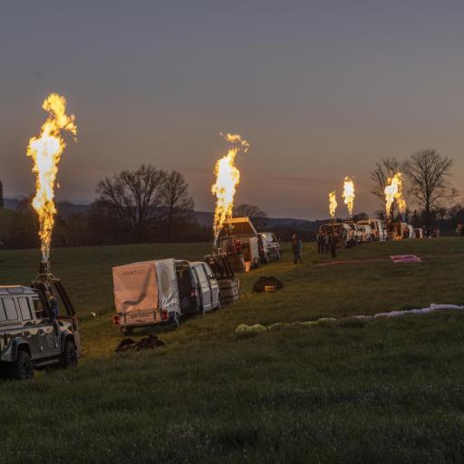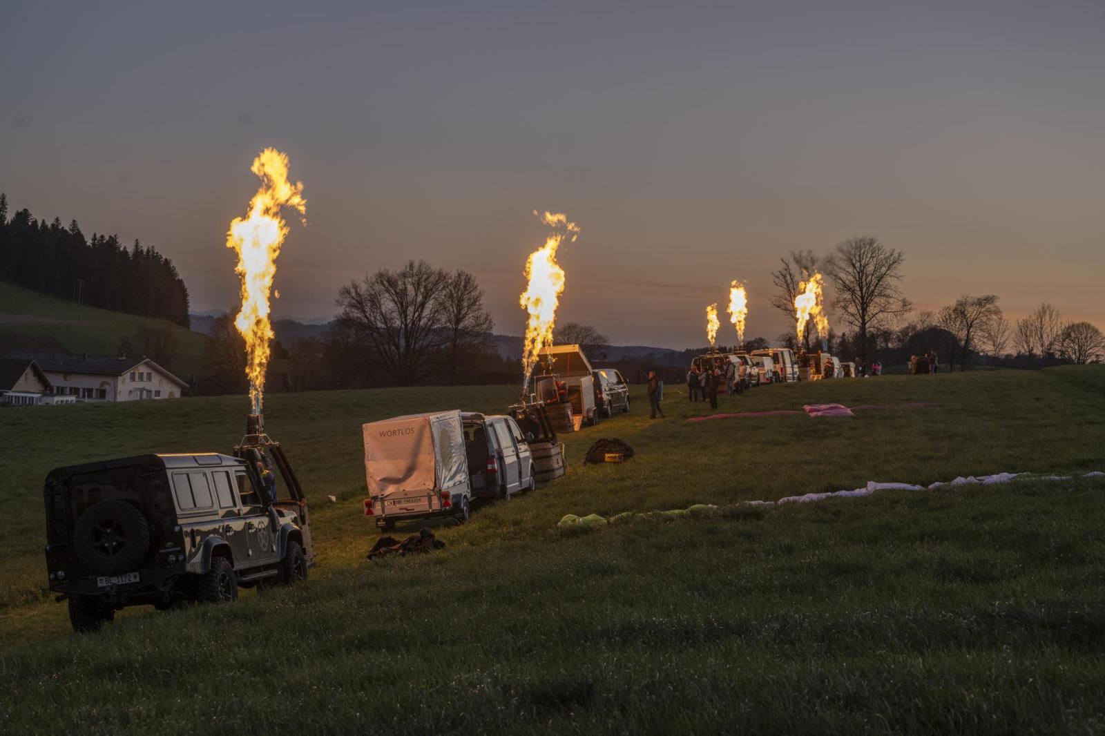 Die dann auffrischenden Winde liessen ein sicheres Aufstellen der Ballonhüllen leider nicht zu. So waren es allein die Brenner, die das Feuer mit einem drachenartigen Fauchen in den eindunkelnden Abendhimmel spuckten. (Video: Ursula Moser)