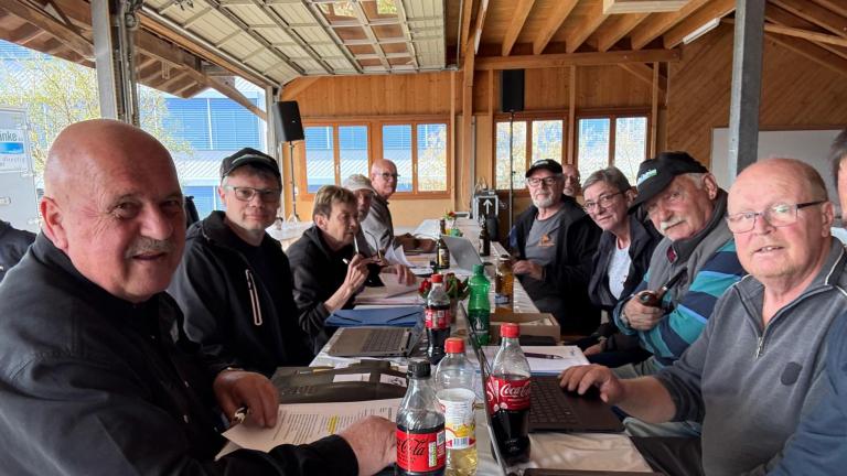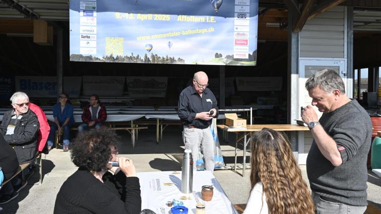 Andreas Wittwer begrüsst die Teams und die Gäste in der Wirtschaft bei herrlichem Sonnenschein. Wegen der böigen Winde haben die Piloten auf das Fly-In verzichtet.
