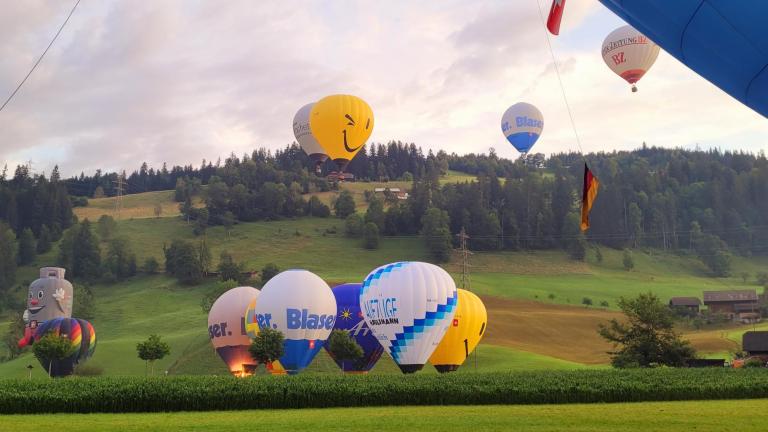 Traditionsgemäss treffen sich die Ballonpiloten der Region zur 1. Augustfahrt beim Räbloch (Schangnau BE). Ein Einminuten-Erlebnis für dich!