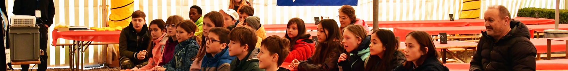 «Wer hat den Auftrieb entdeckt, der das Ballonfahren erst möglich macht?», war eine der ersten Fragen von Niklaus Moos bei seiner Einführung in die Welt des Heissluftballonfahrens. Es war der Grieche Archimedes, der – gemäss Legende – bei seiner Entdeckung Heureka ausgerufen haben soll. Mit Stefan Jost lernten die Schüler, wie eine Wetterprognose zustande kommt und was ein Ballonpilot daraus «lesen» kann. Aber auch Praktisches gab’s zu sehen und zu tun. Christian Koblet demonstrierte das Gasfeuer des Brenners, was sehr Eindruck machte. Und es gab ein Markerwerfen auf ein Schweizer Kreuz: Wer am nächsten beim Kreuz war, hatte diesen Wettbewerb gewonnen. – Preise haben sich aber alle Schülerinnen und Schüler verdient: Sie haben viele Fragen gestellt, die Ballon-Experten richtig gefordert und waren äusserst interessierte Gäste.